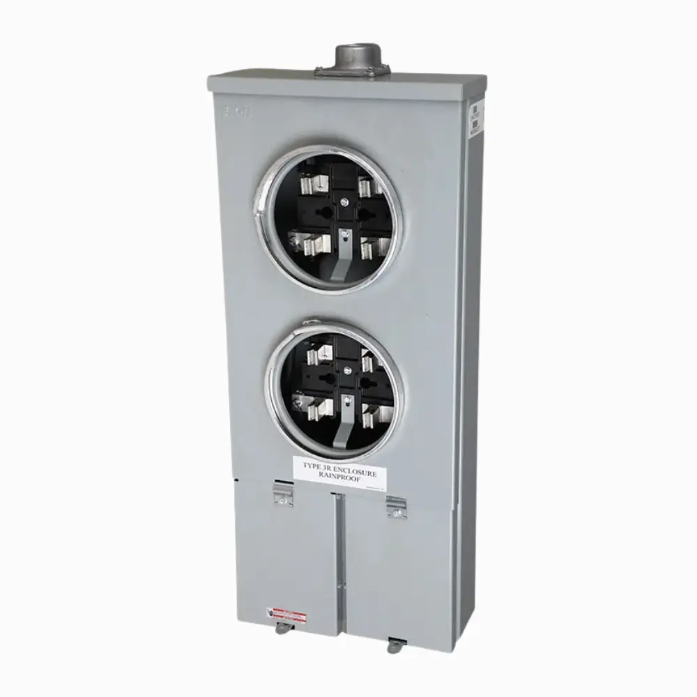 Esta base para medidor doble 100A CH incluye dos interruptores principales de 100 amperios (2x100A), permitiendo la protección independiente de cada servicio eléctrico.