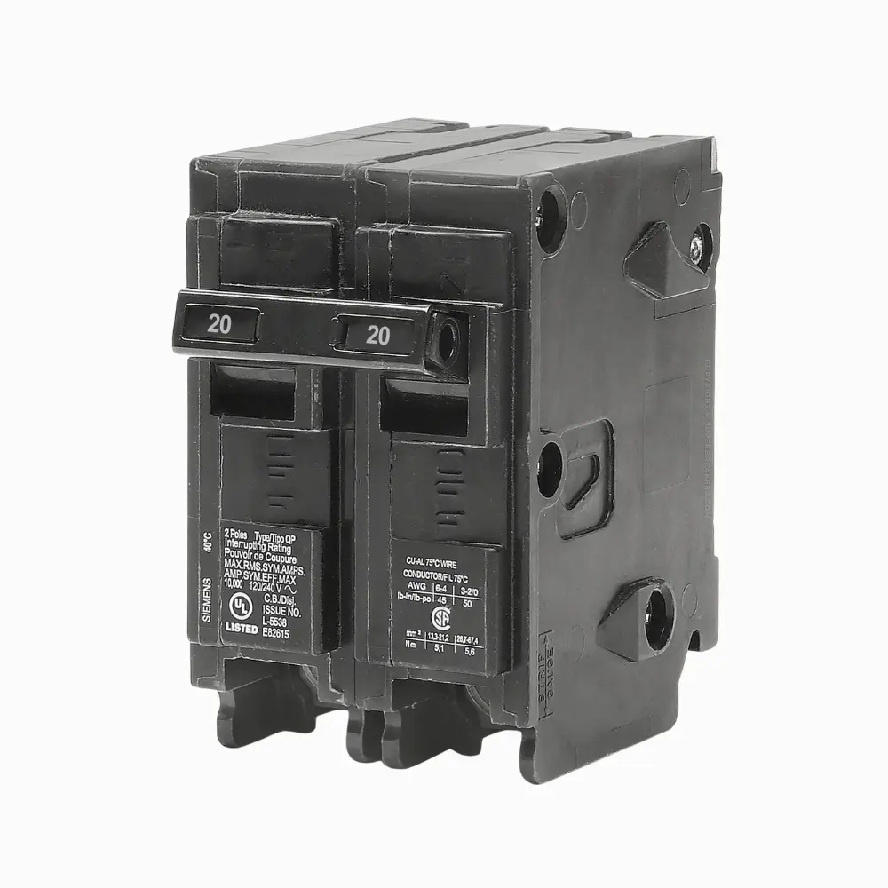 El breaker 20A 2 polos Siemens Q220 es un interruptor termomagnético diseñado para proteger instalaciones eléctricas contra sobrecargas y cortocircuitos en circuitos bifásicos.