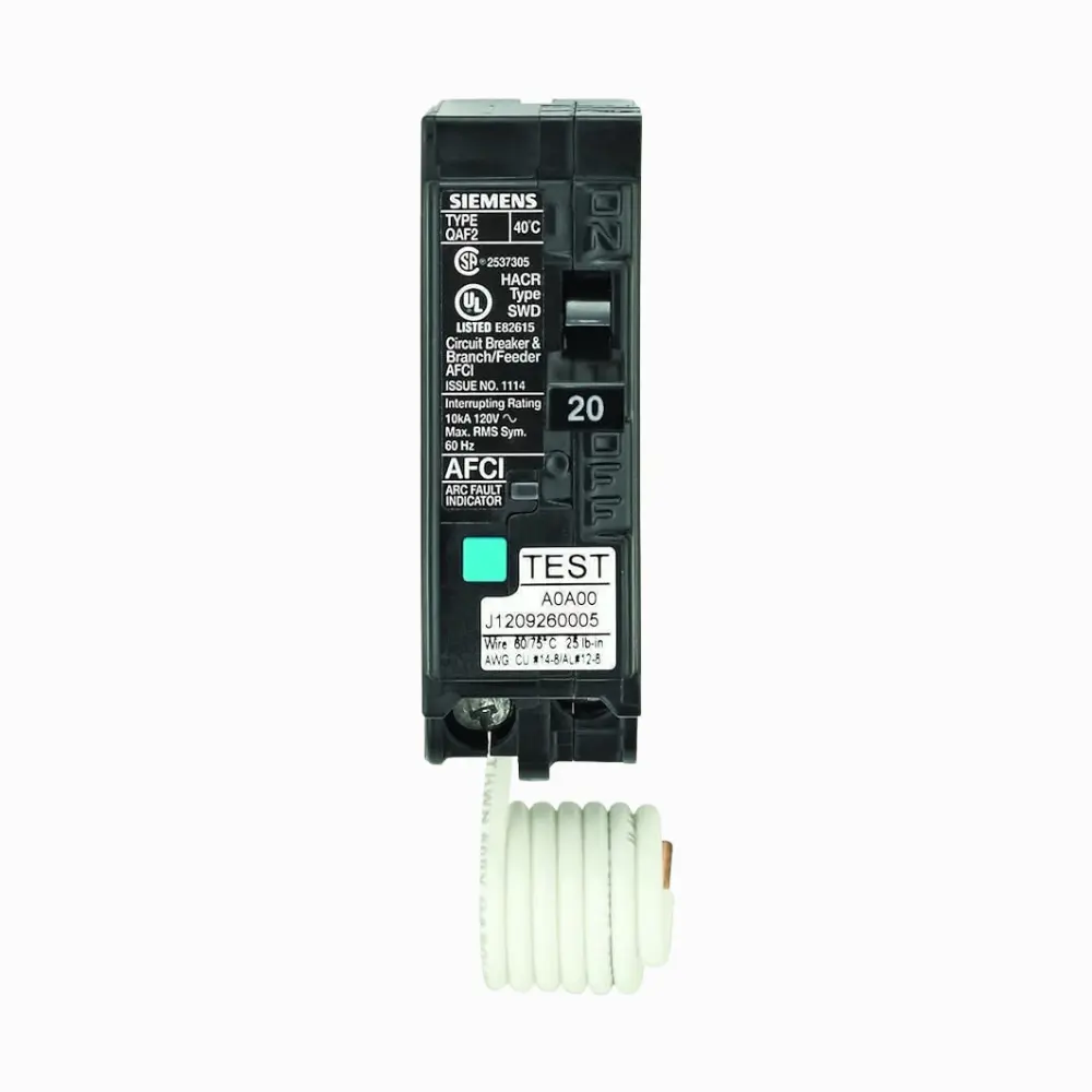 El breaker falla de arco 20A 1 polo Siemens QA120AFCCSA es un interruptor termomagnético tipo AFCI diseñado para proteger instalaciones eléctricas contra fallas de arco, una de las principales causas de incendios eléctricos.