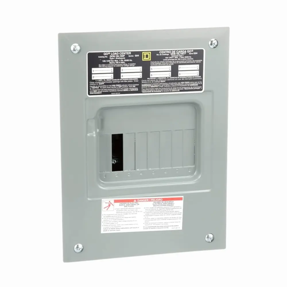 Este centro de carga QO 6 espacios Square D cuenta con una capacidad de 100 amperios y está diseñado para sistemas monofásicos de 120/240 V, ofreciendo una solución compacta y segura para la protección y distribución de energía eléctrica.
