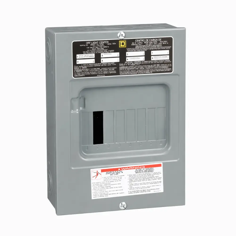 Este centro de carga QO 8 espacios Square D tiene una capacidad de 100 amperios y está diseñado para sistemas monofásicos de 120/240 V, proporcionando una solución confiable para la protección y distribución de energía eléctrica.