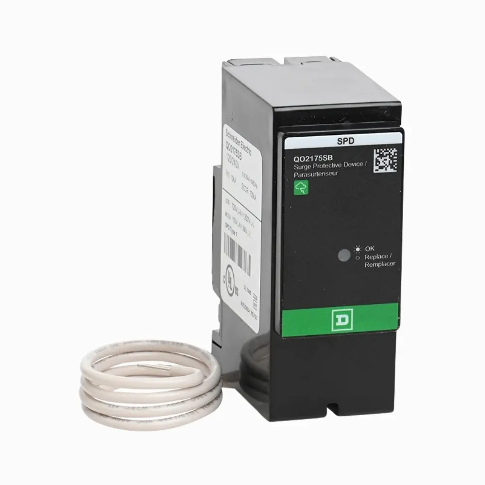 Supresor transitorios Square D QO2175SB protege contra picos de voltaje y sobretensiones. Enchufable, 22 kA y LED de estado. Ideal para Costa Rica.