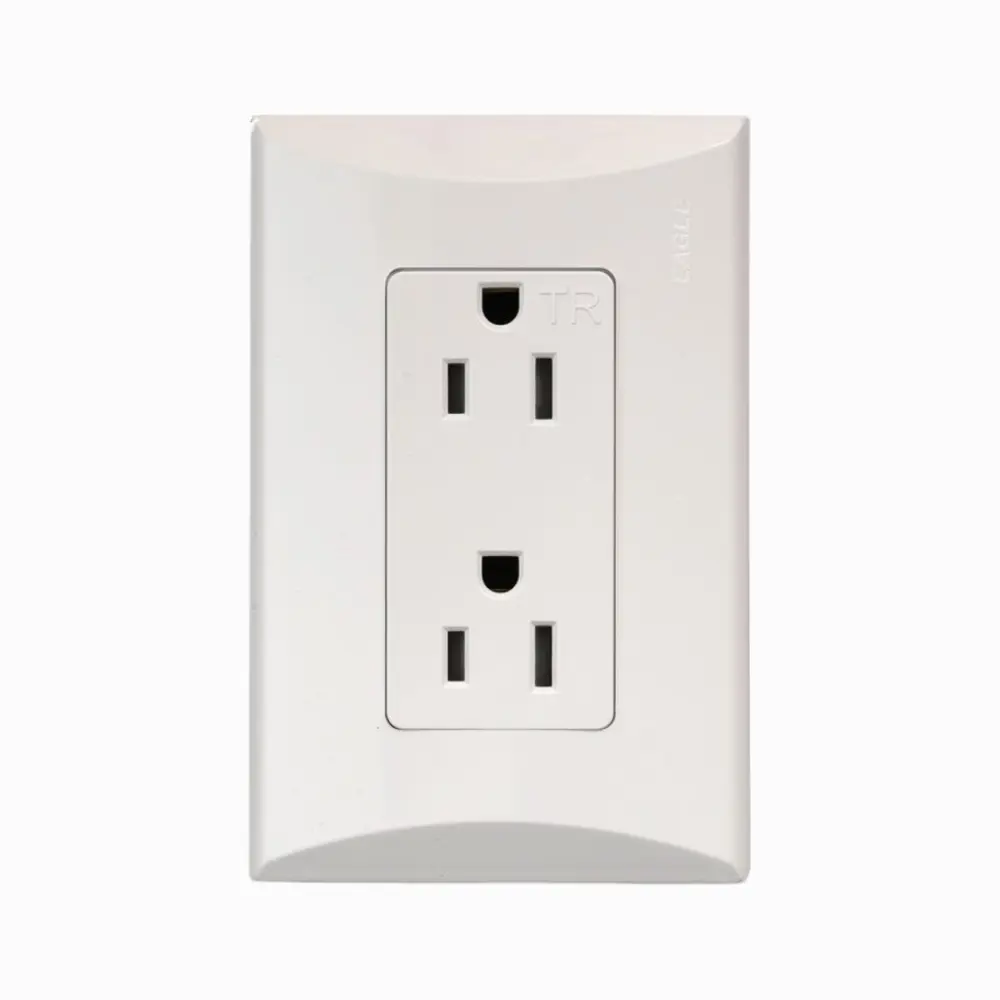 El tomacorriente doble Eagle 1009A línea plata es ideal en Costa Rica para viviendas, oficinas y proyectos eléctricos donde se requiere un punto de conexión doble con mayor seguridad.